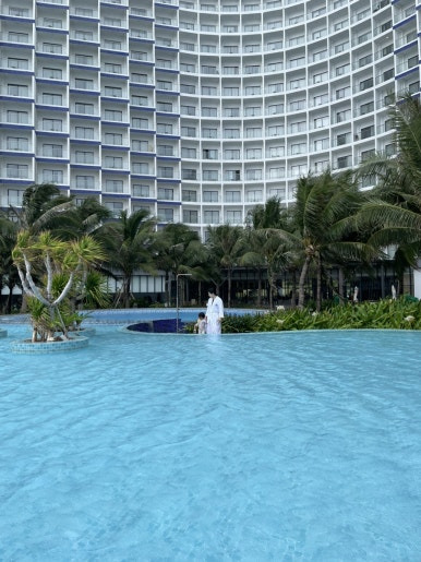 우리는 아시아나항공으로 나트랑에 밤 10시 도착 일정이라, 아기와 하룻밤만 잘 생각으로 공항과 가장 가까운 숙소를 찾기로 했다. 그런데 분명 사진도 같고 주소도 같은, 똑같은 숙소인데 리조트 이름만 다른 신기한 장소를 발견했다. 이름이 최소 스무 가지는 되는 것 같은데, 소유주가 여럿 있는 시스템인가보다 하고 리뷰가 제일 좋은 걸로 골라 예약했다. (리뷰를 꼭 찾아보는 것을 추천합니다)