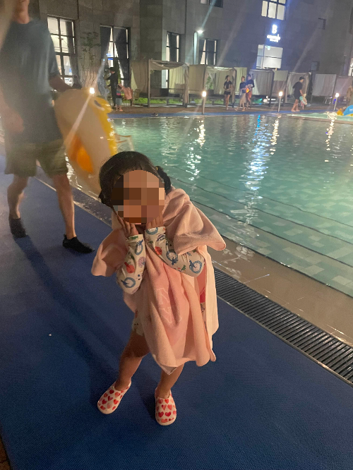 야외수영장인 만큼 아주 깨끗한 편은 아니다. 부유물도 꽤 많고, 아무래도 아이들이 많이 이용하는 시설이라 더러운 건 눈 질끈 감고 놀아야 한다. 아마 쉬야도 많이 했을텐데.. 어쩌겠나. 아주 얕은 아기풀과 조금 깊은 풀 두 가지로 되어 있다.