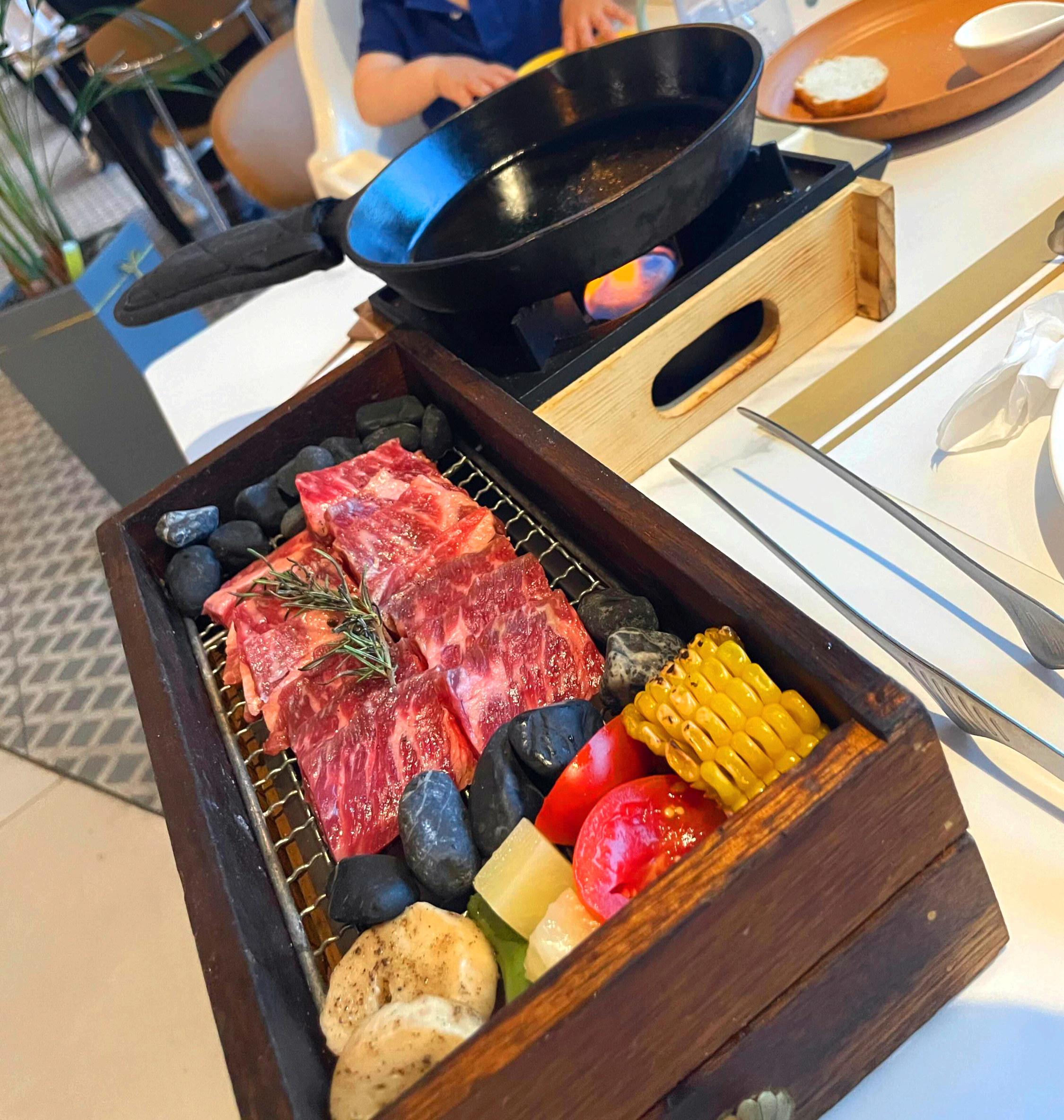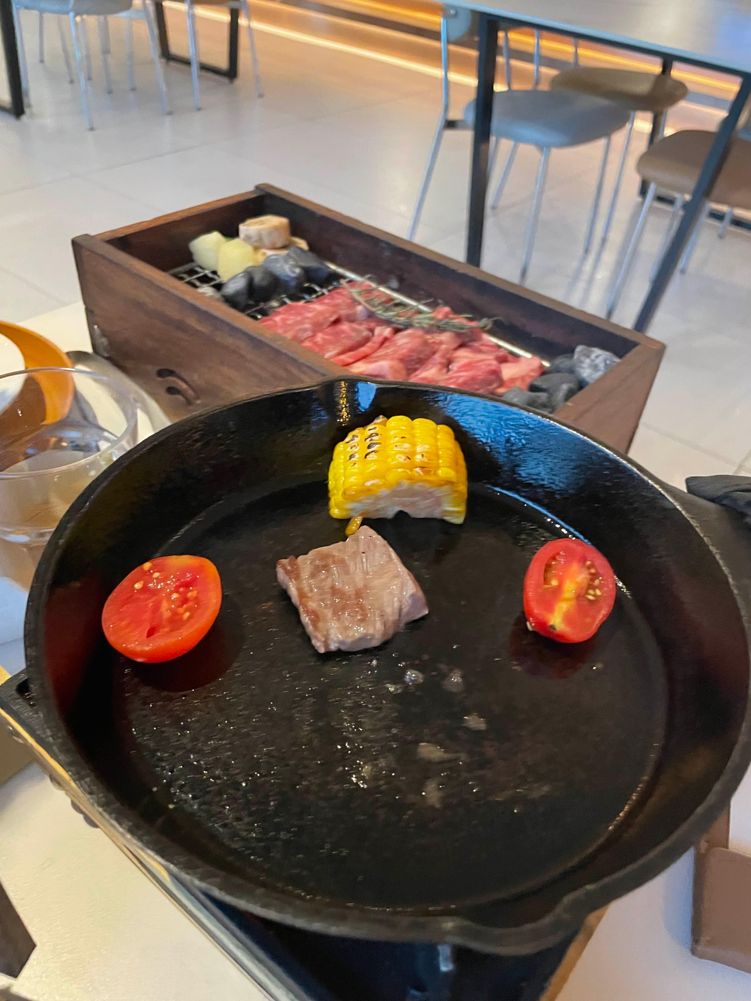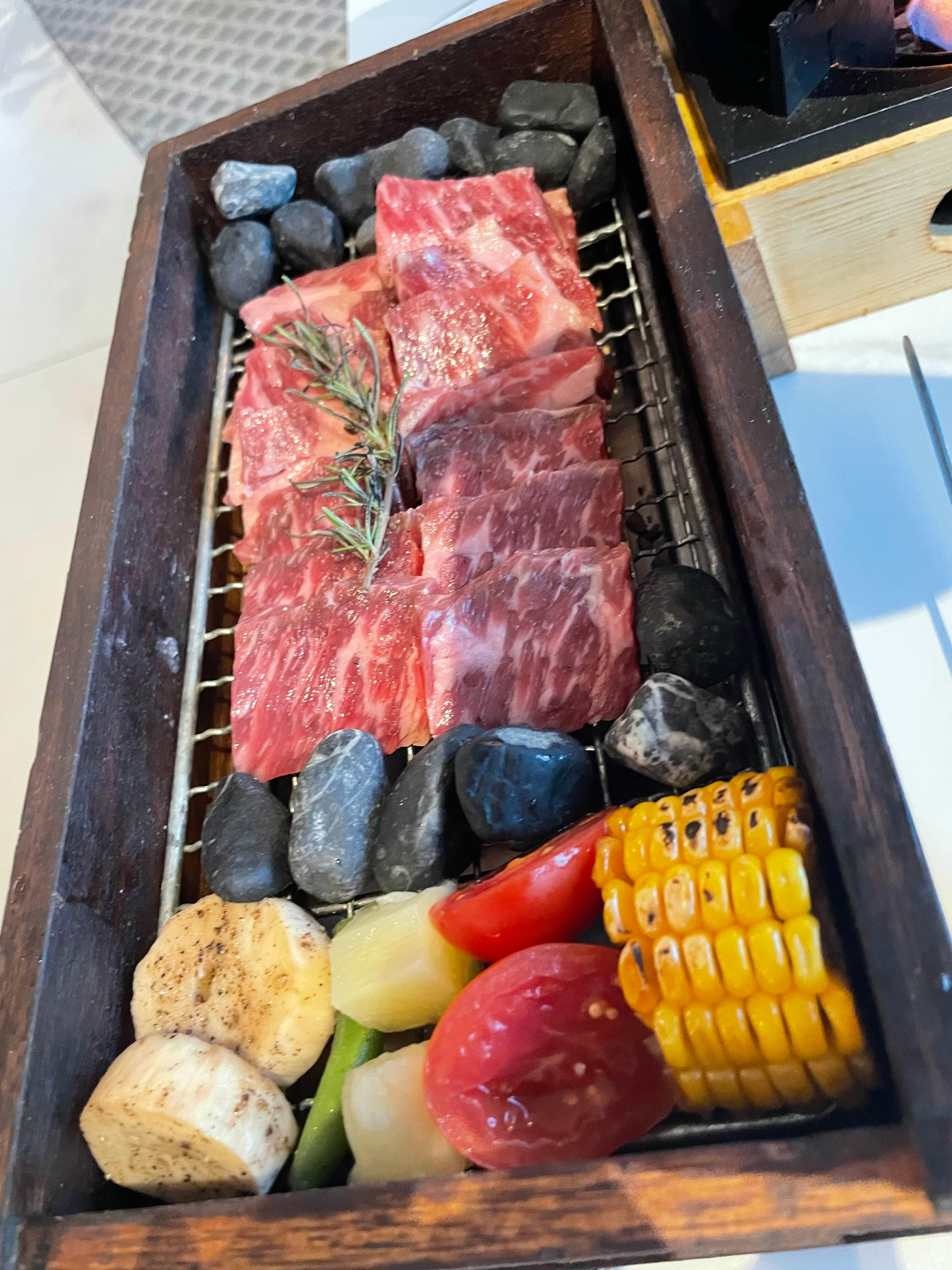 스테이크를 테이블에서 구워 먹을 수 있게 주셔서 너무 좋았다.