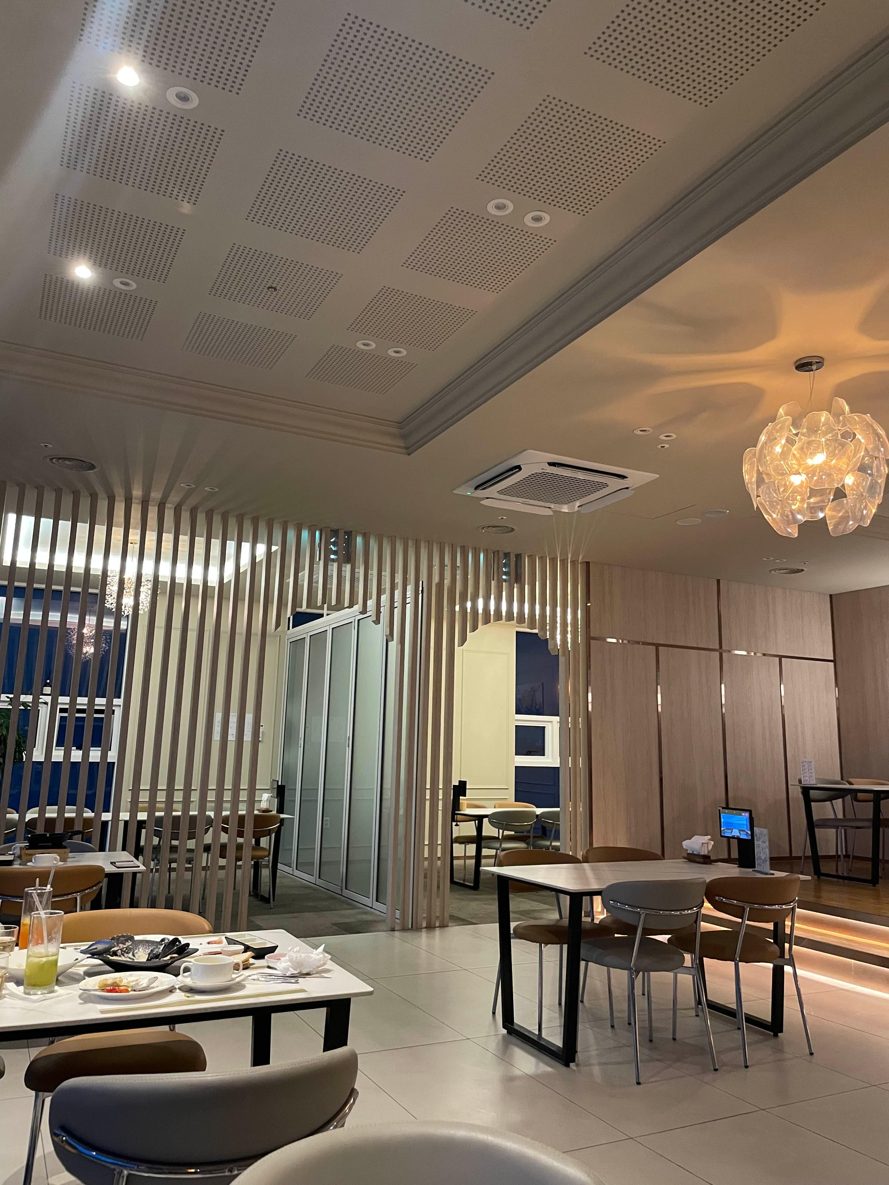 내부가 길쭉한 느낌이라 바닷가 쪽으로 난 창가 쪽으로 넓은 바다뷰가 펼쳐진다. 뷰는 정말 좋다. 해질 무렵 너무 아름다웠음... 이렇게 좋은 뷰면 서울에서는 훨씬 비쌀텐데....