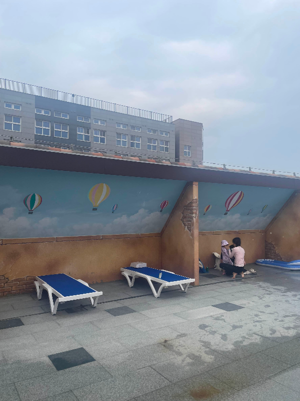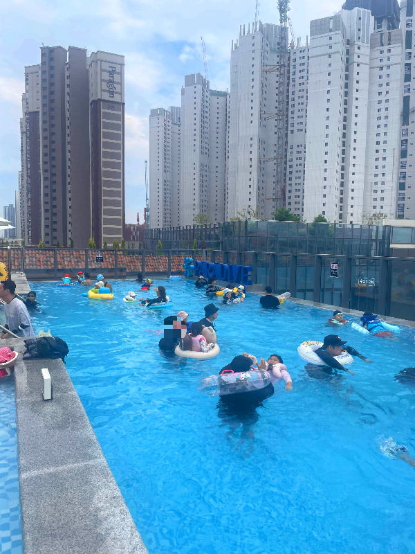 인피니티풀은 크기 적당하고 깊이 적당하고 놀기는 좋았다. 뷰는 완전 안 좋다. 공사장 뷰와 주차장 뷰가 있다ㅋㅋㅋ 야외수영장이지만 수질관리는 비교적 괜찮은 편.