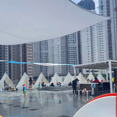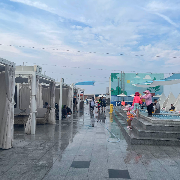 방갈로 너머로 보이는 공사장 뷰... 파라루프의 최대 단점은 탈의실이 더럽고, 샤워시설이 열악하다. 물놀이 시설 자체는 가격 저렴하니 이 정도로 만족. 어린 아이들 위주로 놀기 적당하다.