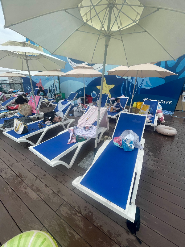 방갈로는 그래도 계속 수요가 있는데 늦은 오후가 되니까 썬베드는 많이 비어 있는 것 같았다. 방갈로가 꼭 필요하다면 미리 예약하는 것을 추천한다. 우리 가족의 경우 아이들은 계속 물에 들어가고 싶어하기 때문에 썬베드만으로도 충분했다.