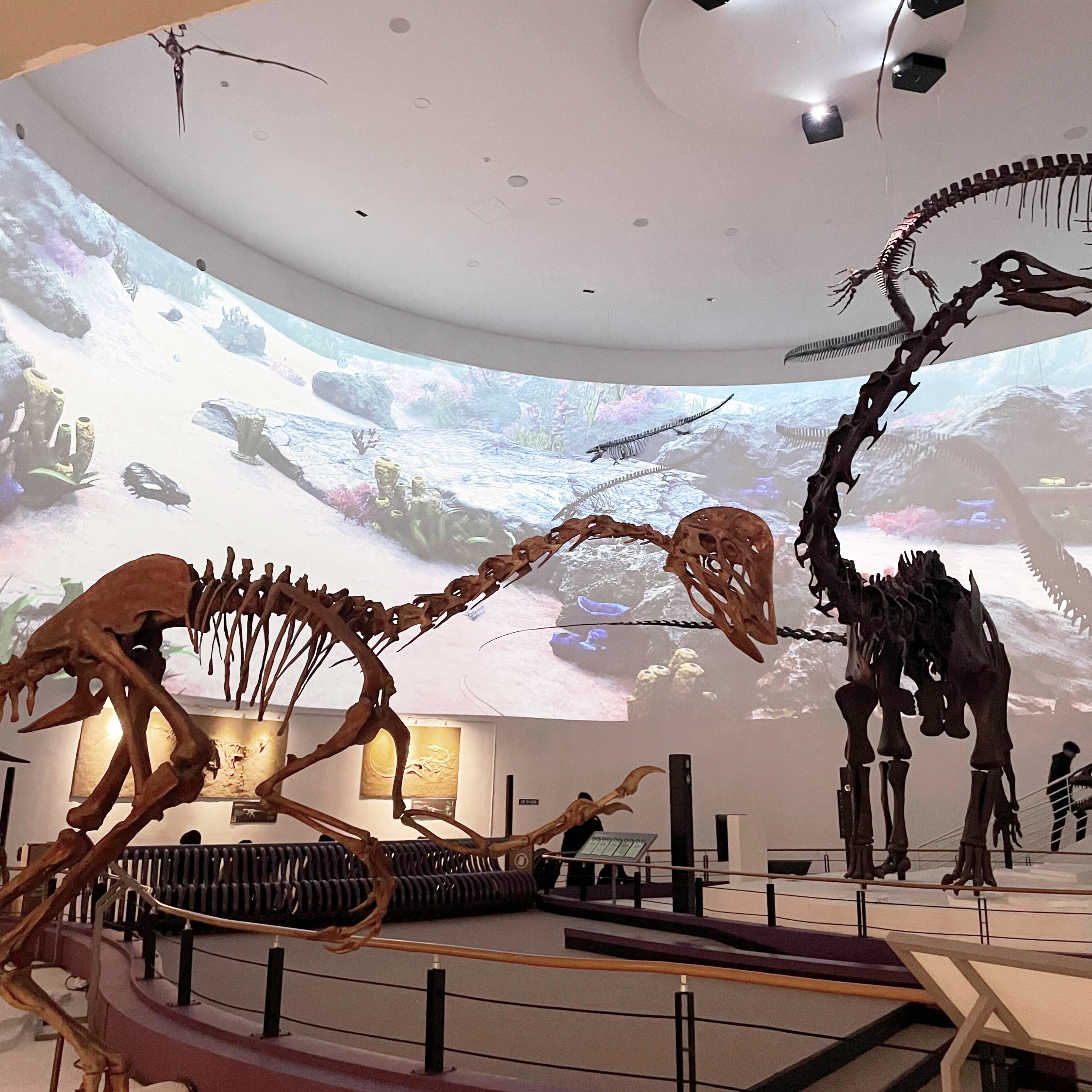 입장하자마자 거대한 공룡 모형이 있고 시간대별로 미디어 파사드가 공룡과 어울어져 볼만했다. 공룡을 좋아하지 않더라도 재밌게 볼 수 있는 콘텐츠였는데 실내가 조금 어두워서 돌전 아기들은 무서울 수 있다.