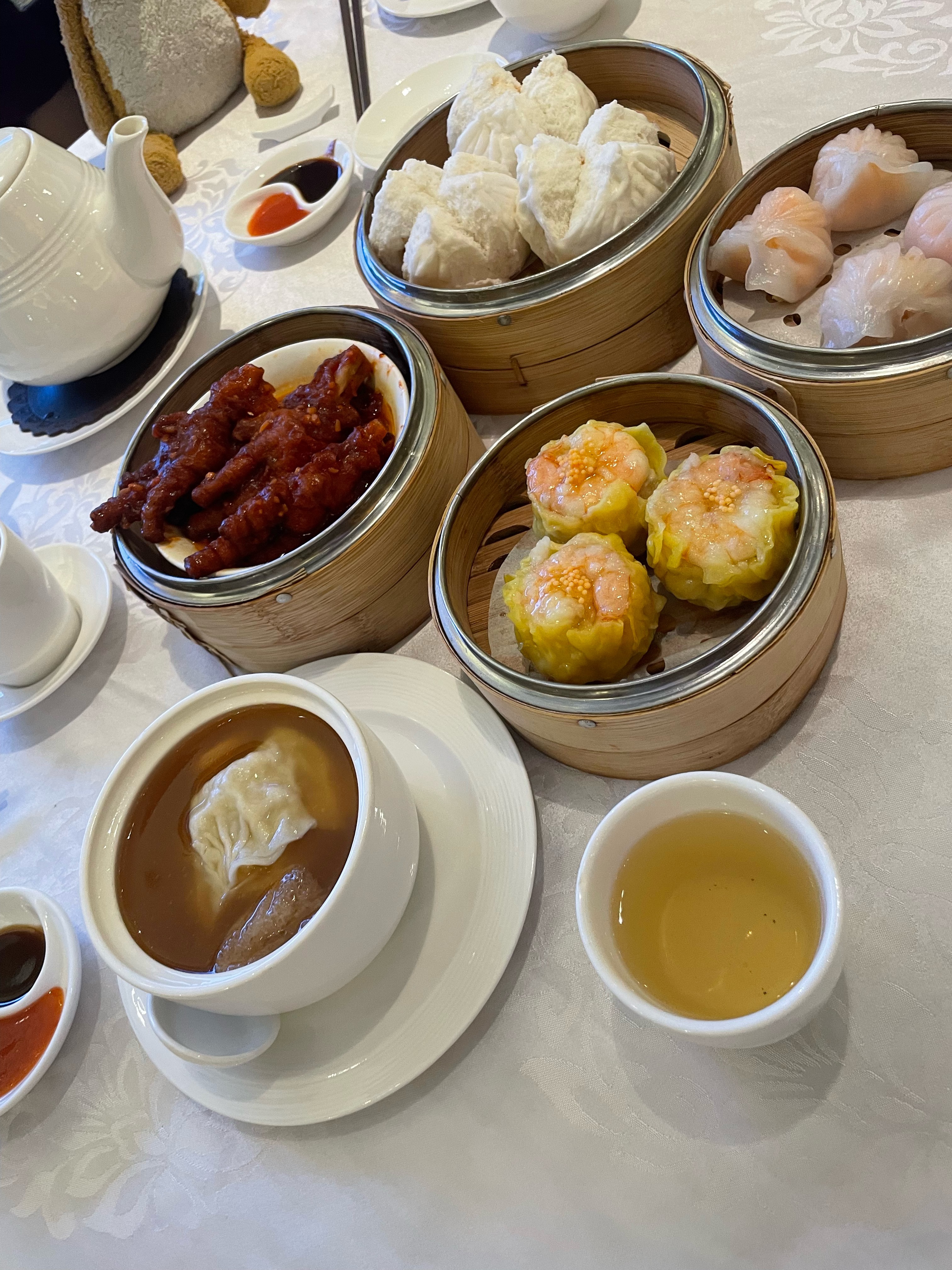 • 왕 시우마이, 하가우(새우 딤섬), 스팀 치킨 클로, 수프 덤플링