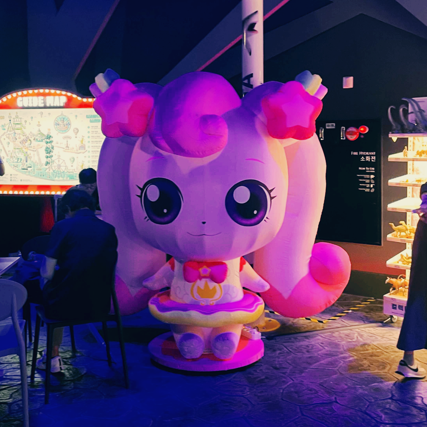 난리나게 뛰어다니고 탈출한 티니핑 세계. 파라다이스시티 로비는 아주 평화로웠다. 원더박스도 밤 컨셉이라 너무 어두웠는데 여기도 밝진 않네. 티니핑 러버 아가들은 한번 쯤 가볼만 합니다~~